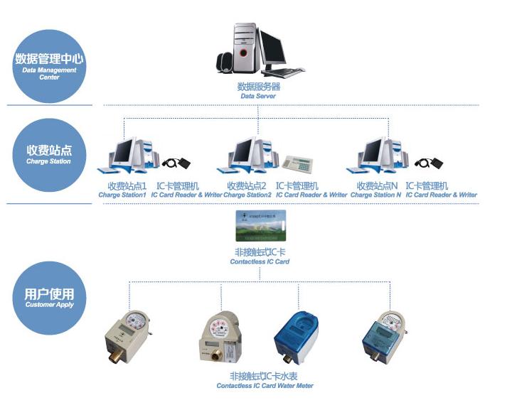IC卡水表系統(tǒng)以IC卡作為數(shù)據(jù)載體,在微機系統(tǒng)管理軟件下可實現(xiàn)用水收費、數(shù)據(jù)存儲分析、監(jiān)控水表運行狀態(tài)等功能,從而對水資源實現(xiàn)科學化、系統(tǒng)化、透明化的管理。本系統(tǒng)可通過預(yù)付費、水表自動核減水量、根據(jù)水量自動開關(guān)閥等途徑,解除傳統(tǒng)人工抄表擾民、耗費大量時間和精力等難題,并杜絕惡意欠費。IC卡水表系統(tǒng)可有效提高管理部門的效益,已廣泛在高校、物業(yè)中心等全國各行業(yè)成功運用。